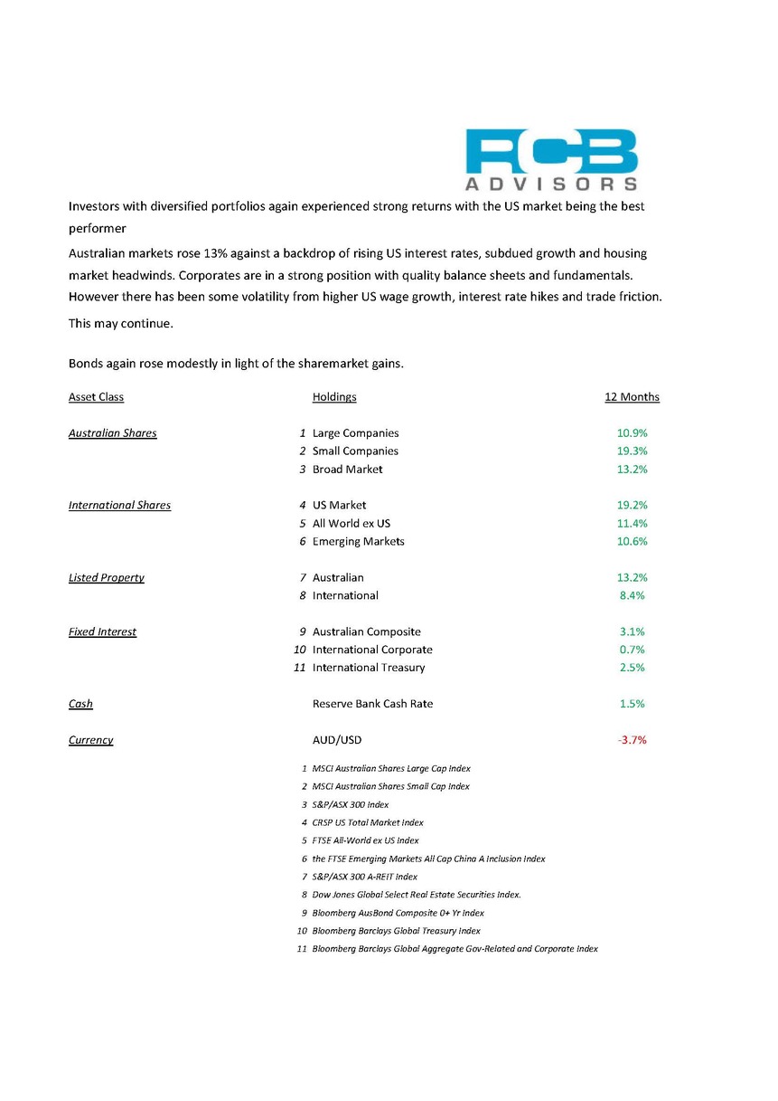 Investment returns to 30 June 2018