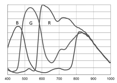 Hallmarks of datasets that have been acquired with such instruments, without a suitable IR/UV filter in place, is a distinct yellow cast that is hard (impossible) to get rid of, due to a strong green response coming back in combined with extended red channel tail.