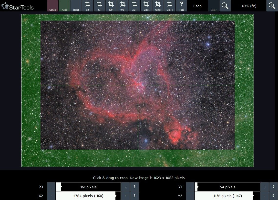 Using the crop module is fairly straightforward. The desired crop is created by clicking and dragging with the mouse the area to retain. Fine-tuning can be accomplished by changing the X1, Y1 and X2, Y2 coordinate pair parameters.