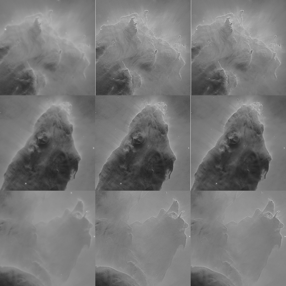 For images with heavily distorted PSFs that are highly variant (for example due to field rotation, tracking error, field curvature, coma, camera mounting issue, or some other acquisition issue that has severely deformed stars in an anisotropic way), the 'Spatial Error' parameter may need to be increased, with the 'Sampled Iterations' increased in tandem. The 'Spatial Error' parameter relaxes locality constraints on the recovered detail, and increasing this parameter, allows the algorithm to reconstruct point lights from pixels that are much less co-located than would normally be the case. Deconvolution is not a 100% cure for such issues, and its corrective effect is limited by what the data can bear without artifacts (due to noise) becoming a limiting factor.
