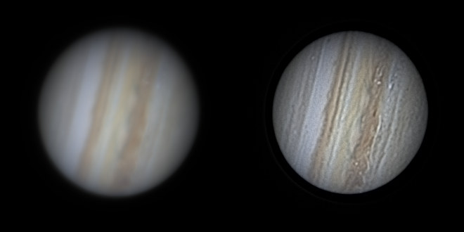 A preset for lunar, planetary, solar use quickly configures the module for lunar, planetary and solar purposes; it clears the apodization mask (no star sampling possible/needed) and dials in a much higher amount of iterations. It also dials in a large synthetic PSF radius more suitable to reverse atmospheric turbulence-induced blur for high magnification datasets. You will likely want to increase the amount of iterations further, as well as adjust the PSF radius to better model the specific seeing conditions.