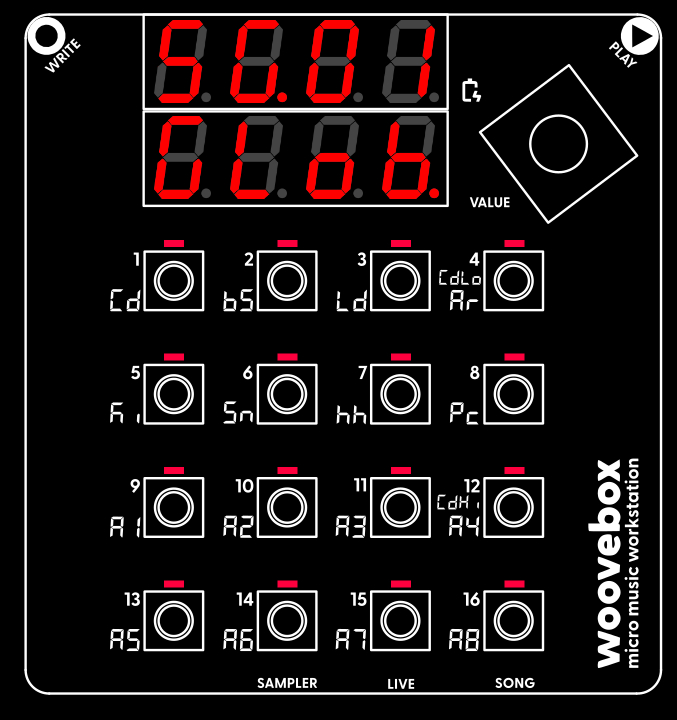 Once your Woovebox has booted up, you will be dropped into Song ("SG") mode.