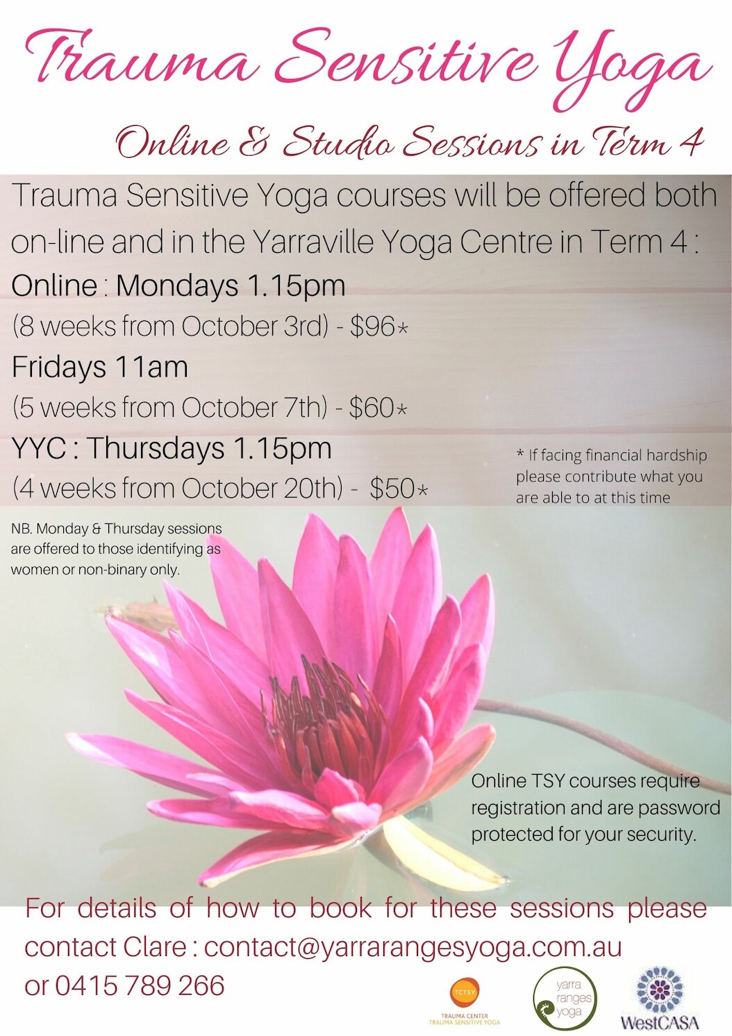 In Term 2 there will be both online and face to face yoga sessions offered. The term begins on April 16th.
